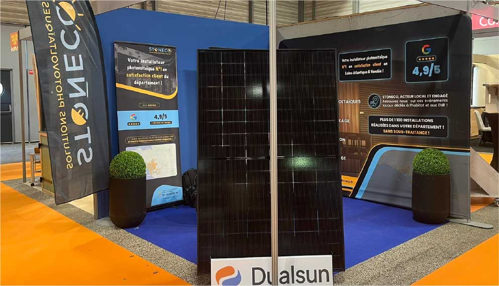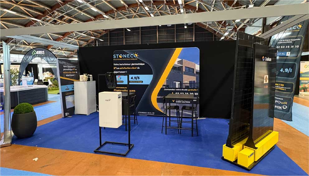 Cette année, STONECO vous accueille sur 2 stands pour échanger autour de vos projets photovoltaïques, d’autoconsommation et de batteries de stockage :